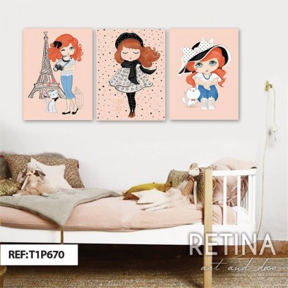 Lot de 3 tableaux little girl