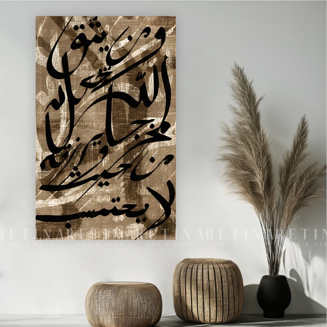 لوحة خط عربي ومن يتقِ الله يجعل له مخرجا ويرزقه من حيث لا يحتسب